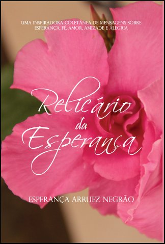 A paranaense Esperança Arruez Negrão resolveu reunir os vários textos que escreveu ao longo de seus 85 anos de vida – desde a década de 60 até os dias atuais – e transformá-los em um livro que pudesse atingir pessoas de todas as idades com uma inspiradora coletânea de mensagens sobre esperança, fé, amor, amizade e alegria. O resultado transformou-se no Relicário da Esperança. O nome do livro não poderia ser melhor, afinal o que as pessoas têm de mais precioso do que as palavras? Elas são capazes de ofender e elogiar. Se profetizadas tem um grande poder. E mesmo que não faladas ou escritas, existem em pensamento. Nesta obra, o leitor pode encontrar lindos poemas, crônicas e reflexões da autora sobre as mais variadas temáticas como lar, família, solidariedade, cotidiano, mãe, solidão, Natal, entre outros.